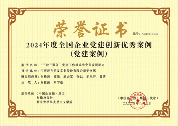 8月3日,2024全國企業(yè)黨建(案例)研討會暨第四屆企業(yè)黨建創(chuàng)新優(yōu)秀案例發(fā)布儀式在京成功舉辦,江西萍鄉(xiāng)龍發(fā)實(shí)業(yè)股份有限公司黨支部申報(bào)的課題《“三融三服務(wù)”黨建工作模式為企業(yè)發(fā)展助力》成功入選“2024年度全國企業(yè)黨建創(chuàng)新優(yōu)秀案例”(黨建課題成果案例)。近年來,龍發(fā)實(shí)業(yè)黨支部在湘東...